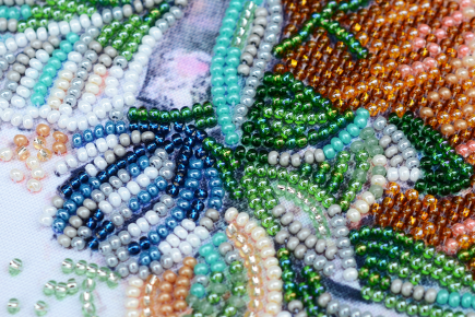 Техніка виконання: шов полукрест и шов назад иголку Кількість кольорів: 32 Кількість бісеру: 8399шт. Матеріал: габардин