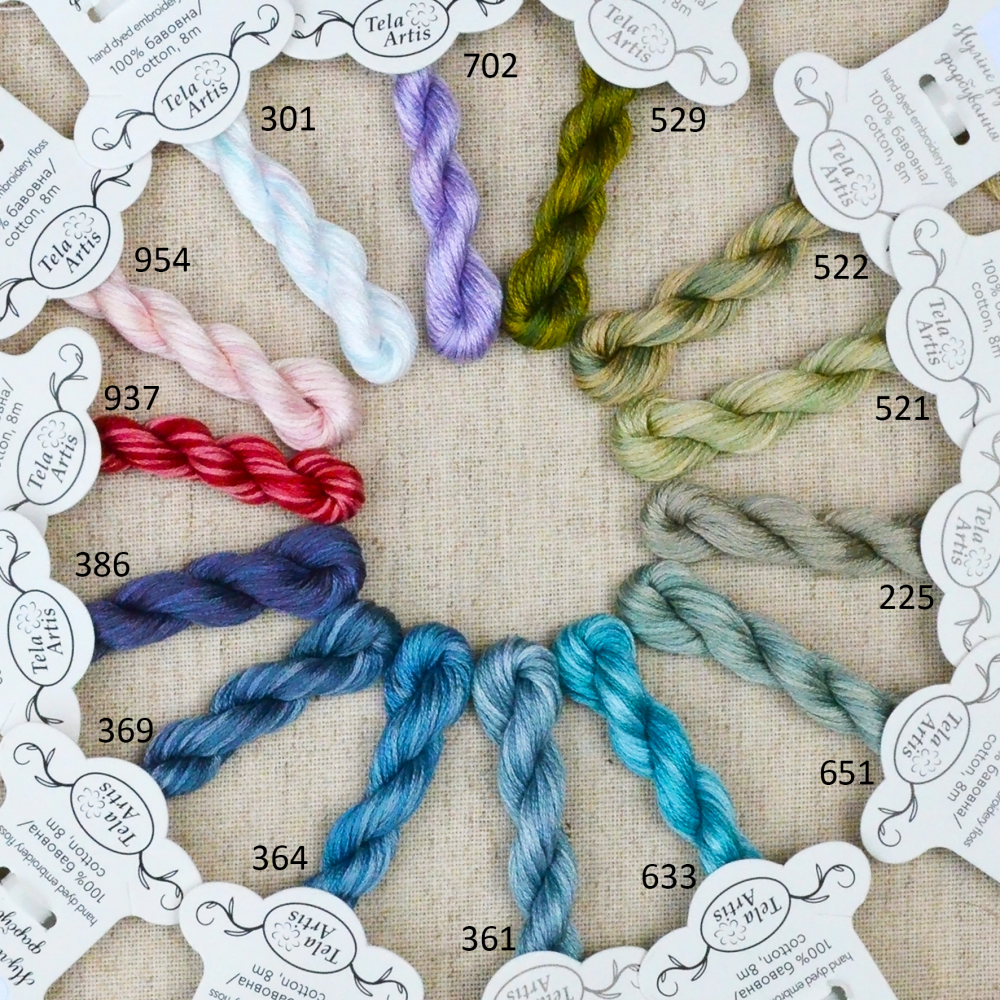 Муліне секційного фарбування використовується для вишивки семплерів, авторських дизайнів та може бути використане на заміну будь якому однотонному муліне.