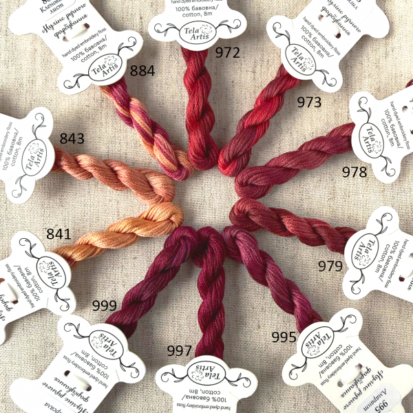 Муліне ручного фарбування на основі муліне DMC. В мотку 8м, 6 ниток в пасмі.