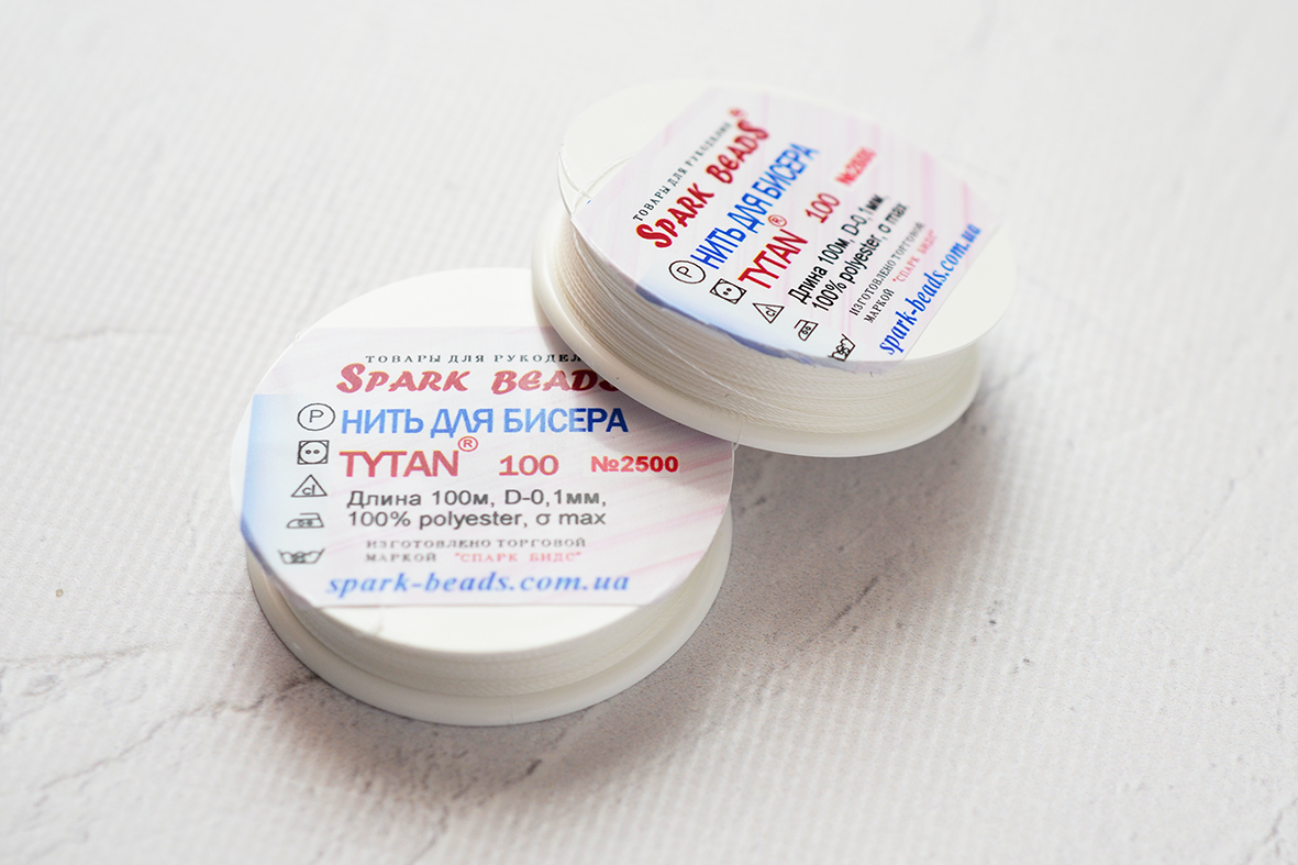 Прочная тонкая нить для вышивки бисером Tytan-100, цвет белоснежный, намотка 100м.