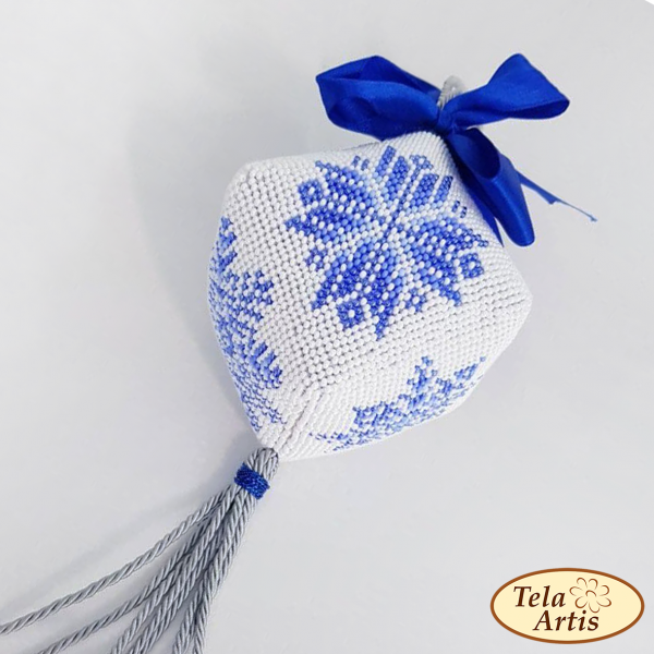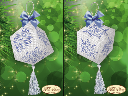 На гранях кубика вышиваются 6 разных ажурных снежинок, оригинального дизайна.