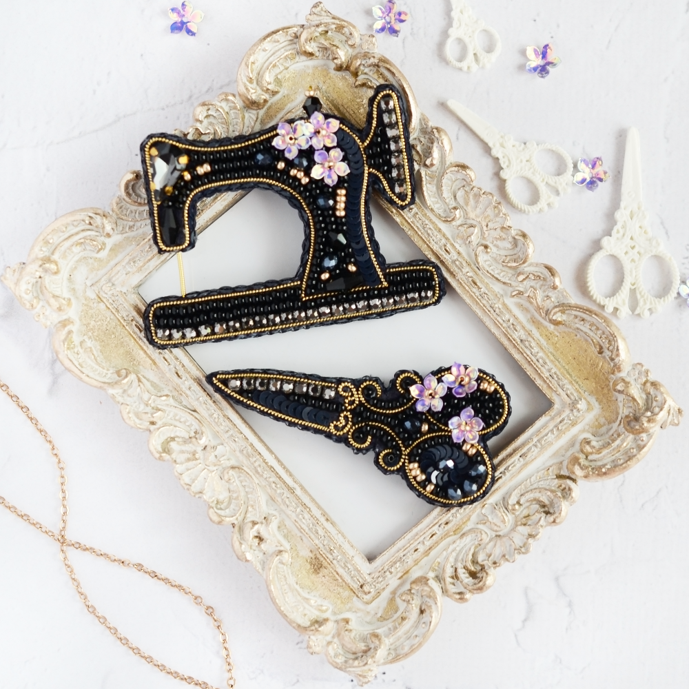 Набор для вышивки украшения (броши). Составляет пару с набором Б-302 Черная швейная машинка