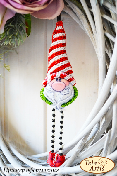 В комплект входит туловище гнома и башмачки. Ножки гнома можно делать любой длины, из ленты, бичевки, шнурка, низки бусин и т.д.