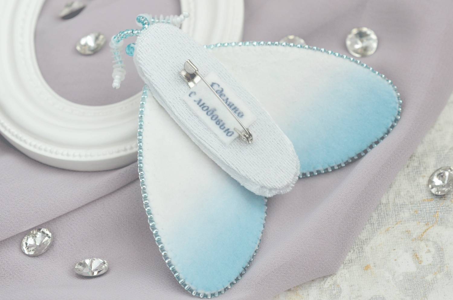 - цветная тыльная сторона крыльев с контуром, на велюре;