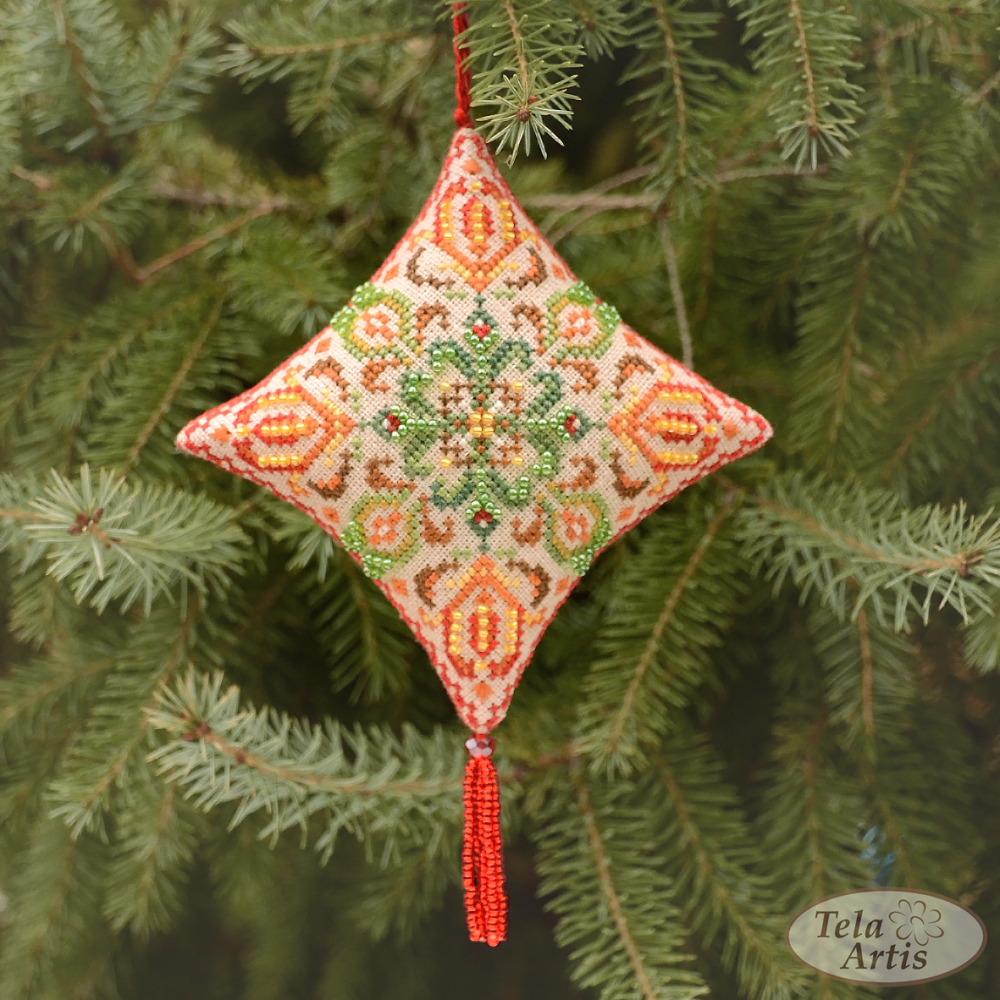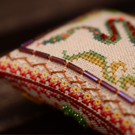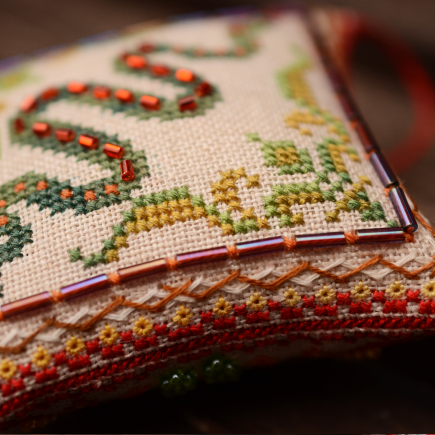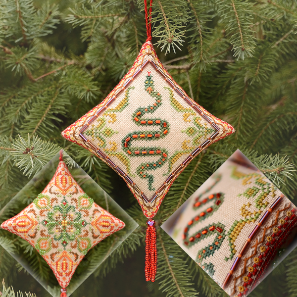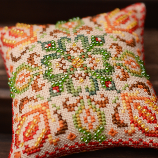 В схемі присутні декоративні стібки (віяловий, вічка, півдіамантові вічка, козлик, біскорнюшний), а також бісер 10/0