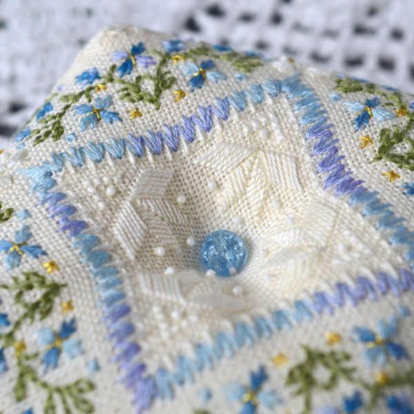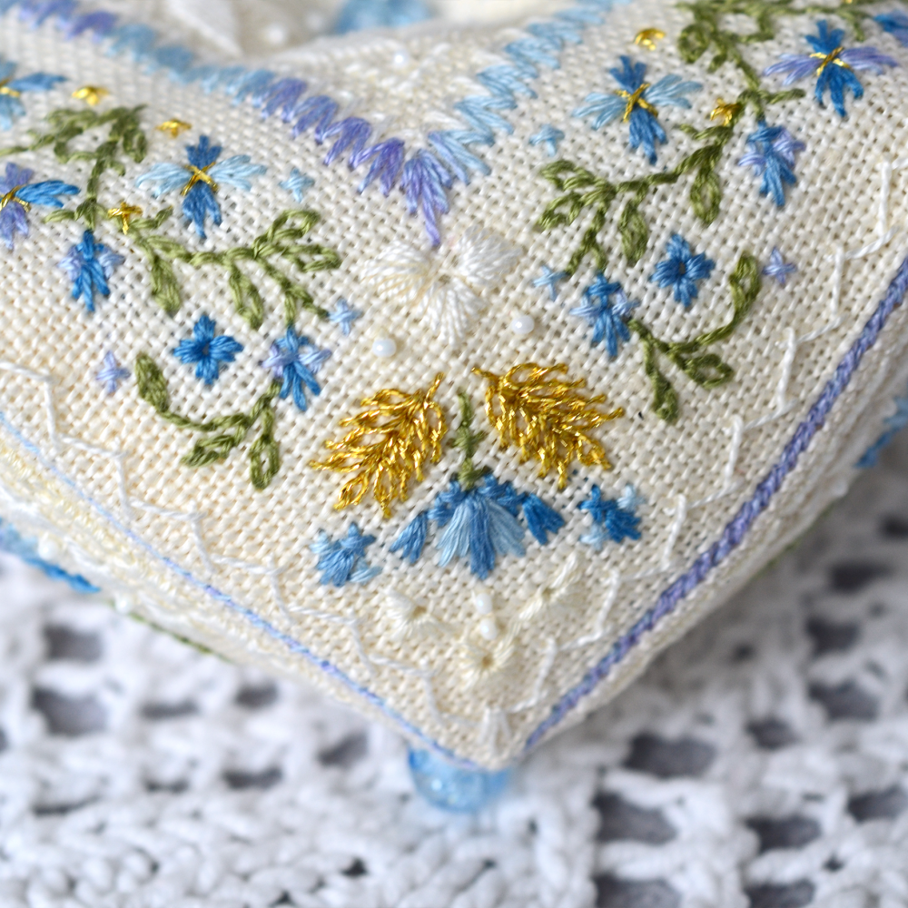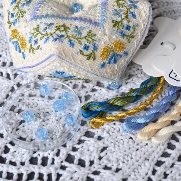 В схемі присутні декоративні стібки (віялові, вічка, петлевий, козлик, настилування), а також мікробісер бісер 13/0
