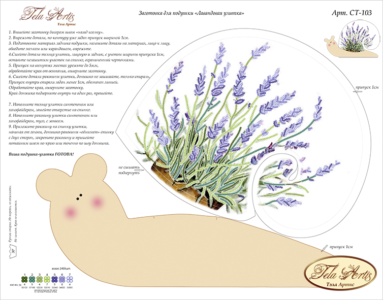 Заготовка для подушки "Лавандовая улитка"Артикул: СТ-103